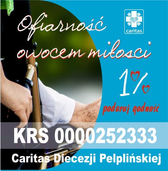 Caritas Diecezji Pelplińskiej zwraca się z prośbą o przekazanie 1% podatku dochodowego. Numer KRS 0000252333. Ze strony internetowej Caritas Diecezji Pelplińskiej można pobrać darmowy program do rozliczania podatku (www.pelplin.caritas.pl). Włączmy się jak najliczniej w to wielkie dzieło pomocy drugiemu człowiekowi. Caritas pomaga dzieciom, codziennie wspiera niepełnosprawnych, chorych i ubogich, otacza opieką osoby dotknięte pandemią. Okażmy serce tym, którzy potrzebują naszej pomocy. Za każde wsparcie serdecznie dziękujemy.