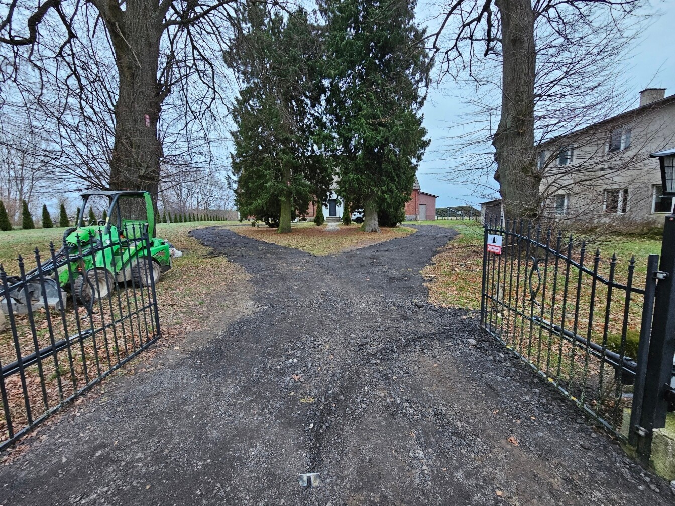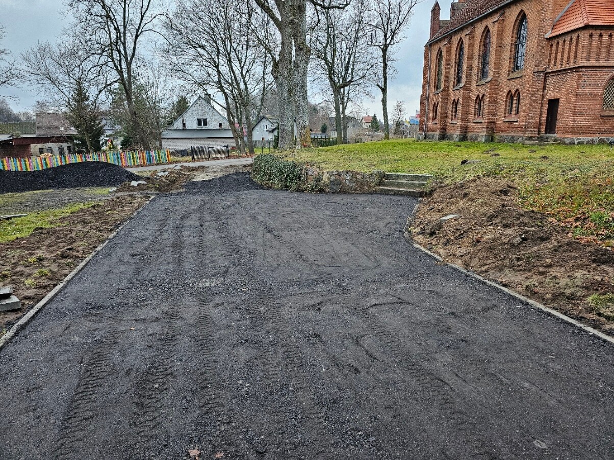 W połowie grudnia 2025 roku utwardzono drogę dojazdową na plebanię z zastosowaniem destruktu asfaltowego (tzw. asfaltu frezowanego). Całkowity koszt wyniósł zaledwie 8.000 zł. Serdecznie podziękowania dla Kierownikowa Dróg Wojewódzkich w Lęborku, p. Adama Kuźmicza, za zorganizowanie i dostarczenie materiału, a dla firmy p. Damiana Mielewczyka za solidne i sprawne wykonanie pracy oraz życzliwą dla parafii wycenę. Bóg zapłać!